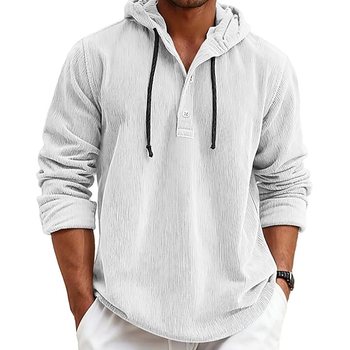 Per uomo Felpa con cappuccio Velluto a coste Maglione Felpa con cappuccio e zip corta Rosso bordeaux Nero Bianco Verde chiaro Blu marino Con Cappuccio Semplice Con zip Testurizzato Casuale Quotidiano