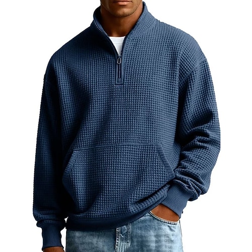 Per uomo Felpa con cappuccio Maglia Felpa a nido d'ape Maglione Felpa con zip corta Nero Bianco Verde chiaro Blu marino Viola chiaro Mezza zip Semplice Casuale Quotidiano Sport Outdoor Streetwear