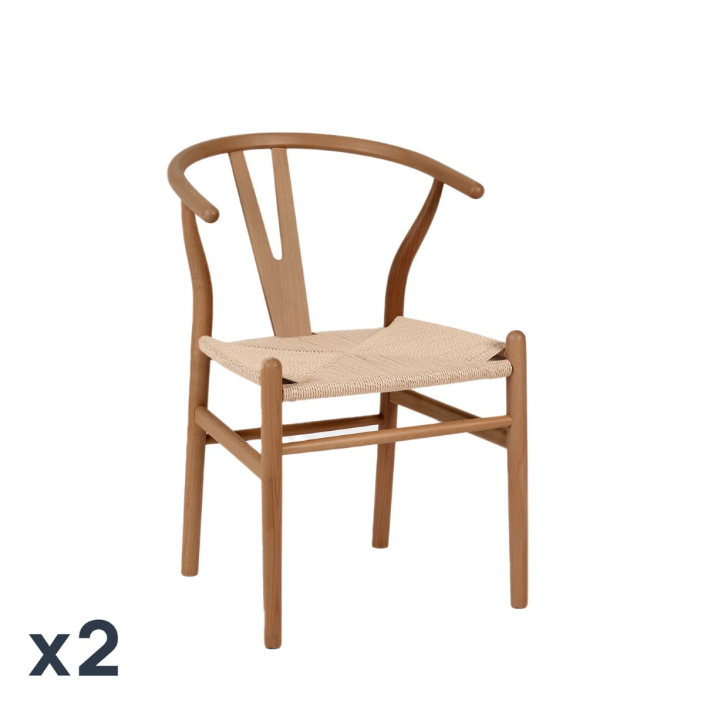Oviala Lote de 2 sillas de jardín de eucalipto y textilene - crudo
