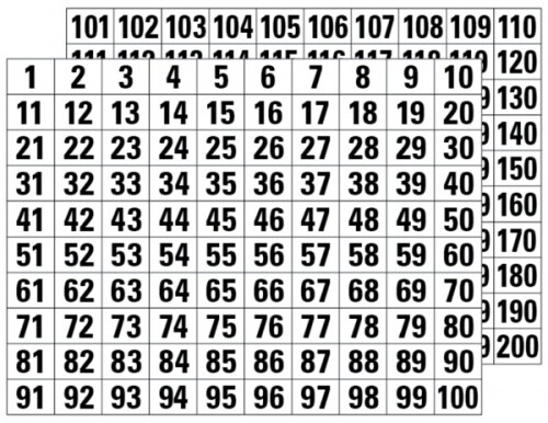 Klebezahlen 1-200, schwarz/weiß, 15x20mm - 235x185 mm Folie selbstklebend