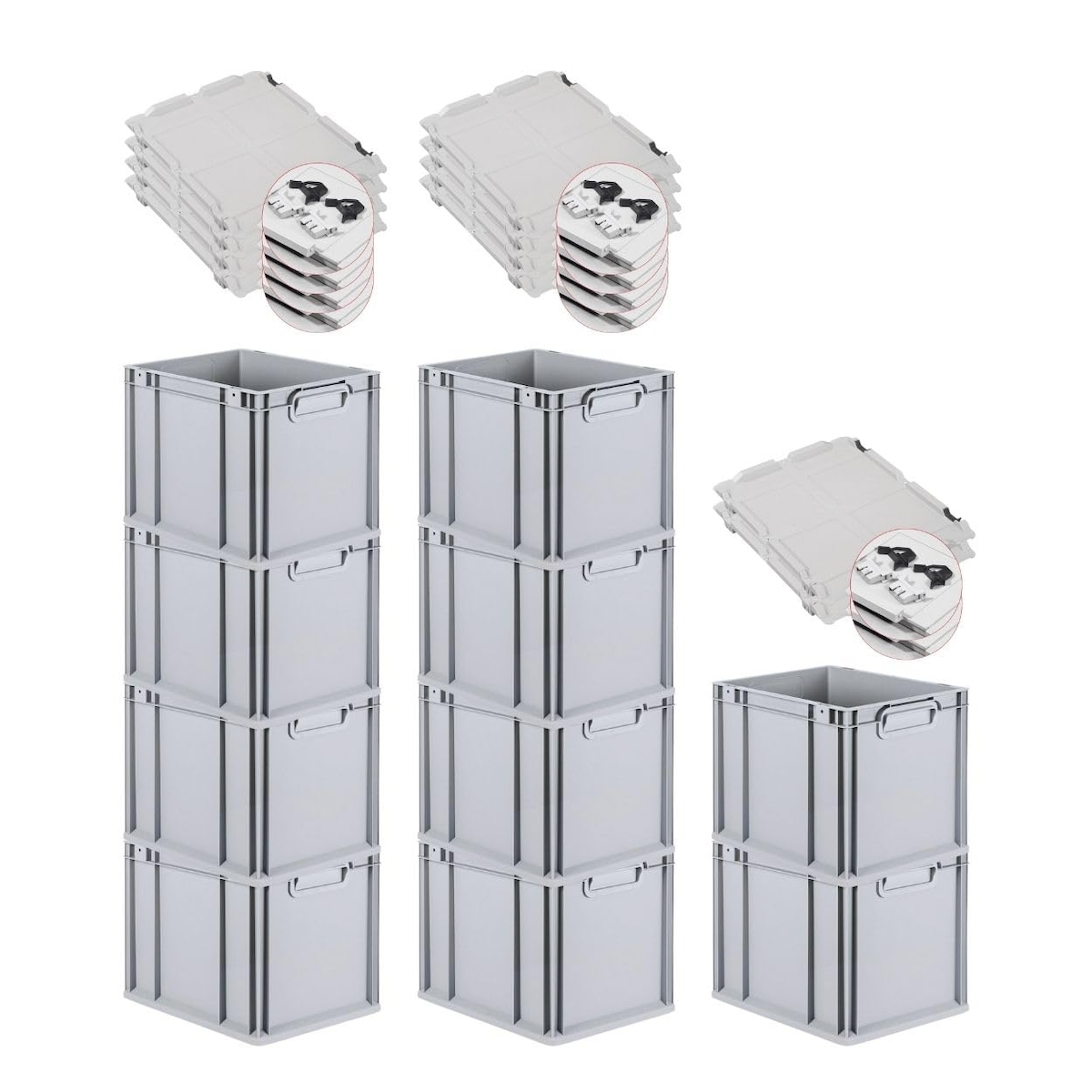 PROREGAL SuperSparSet 10x Eurobox NextGen Economy mit Scharnierdeckel & schwarzen Verschlüssen, Griffe zu, HxBxT 32x40x60cm, 65L, Eurobehälter, Box
