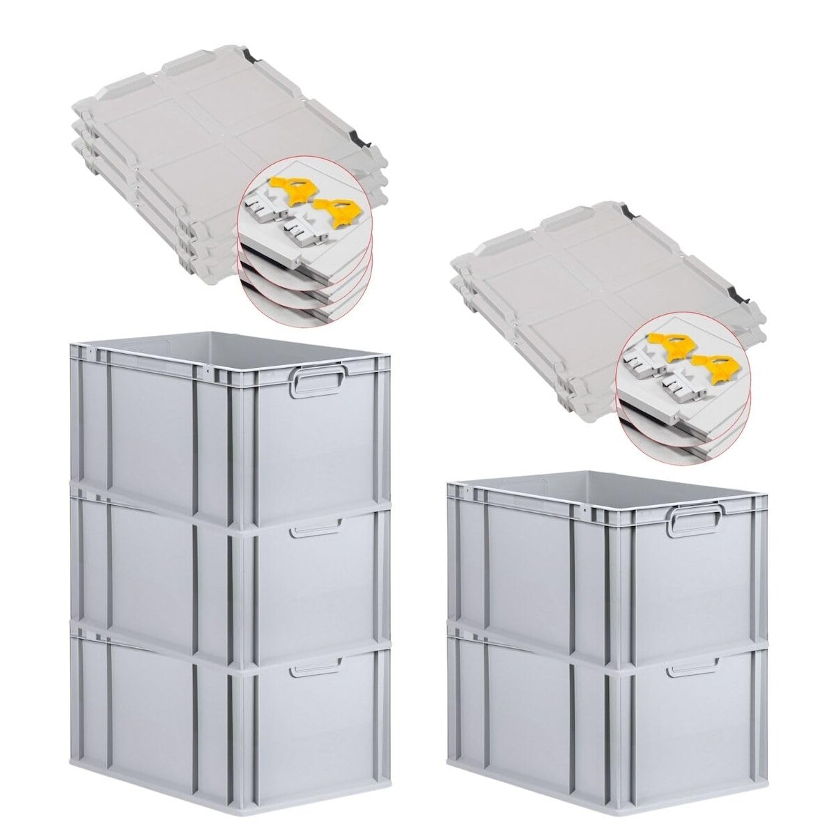 PROREGAL SuperSparSet 5x Eurobox NextGen Economy mit Scharnierdeckel & gelben Verschlüssen, Griffe zu, HxBxT 32x40x60cm, 65L, Eurobehälter, Box