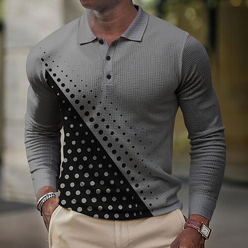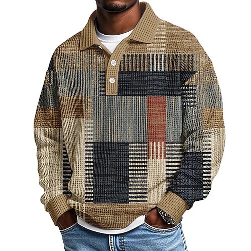 Per uomo Astratto Geometrico Magliette Polo a Nido d'Ape Manica Lunga Magliette polo Camicie con Colletto Business Casual Affari Abbigliamento da lavoro Abbigliamento quotidiano Bottoni Primavera