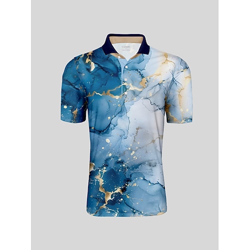 Per uomo Marmo Linea Polo Manica Corta Magliette polo Camicie con Colletto Business Casual All'aperto Affari Athleisure Abbigliamento quotidiano Bottoni Tasca Stampa 3D Estate Nero Marrone chiaro Blu