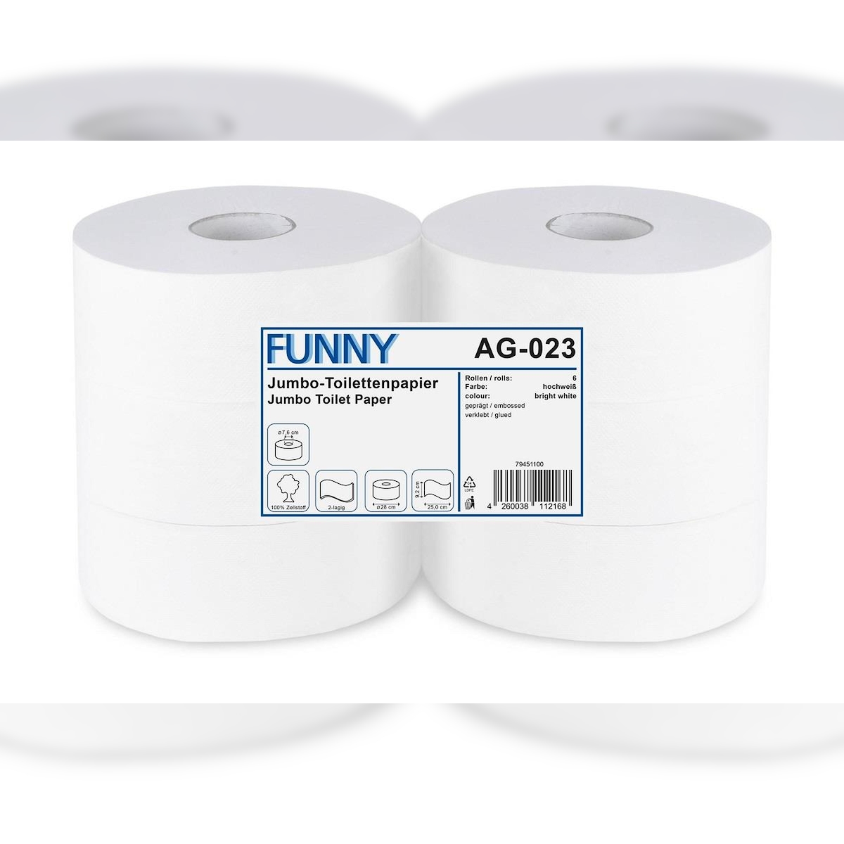Plock GmbH Jumbo Toilettenpapier Funny - 2-lagig - DM 28 cm - hochweiß - 6 Rollen
