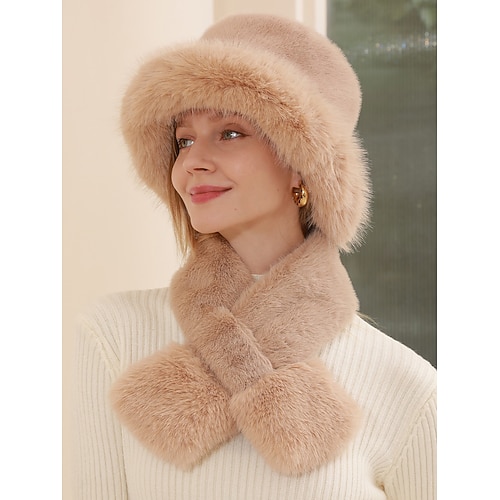 Set da donna con cappello e sciarpa in pelliccia sintetica: disponibile in vari colori, morbido e accogliente per l'inverno, perfetto per la moda nella stagione fredda.