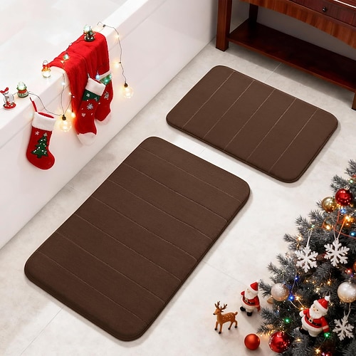 Set di 2 tappetini per WC in velluto corallo, tappetino da bagno combinato, tappetini antiscivolo e altamente assorbenti per uso domestico, set di tappetini da bagno morbidi e confortevoli per