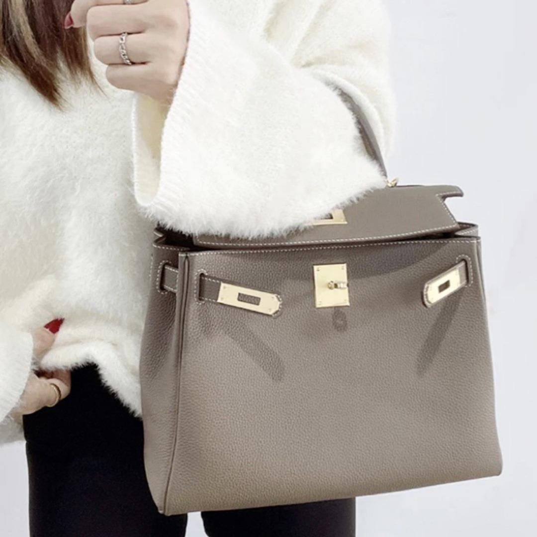 Nieuwe originele lederen Kelly tas met lychee patroon togo bovenlaag koeienhuid handtas, modieuze binnennaden schoudertas, crossbody dames tas