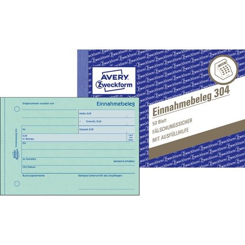 AVERY Zweckform Einnahmebelege 304 DIN A6 quer Perforiert N/A 50 Blatt