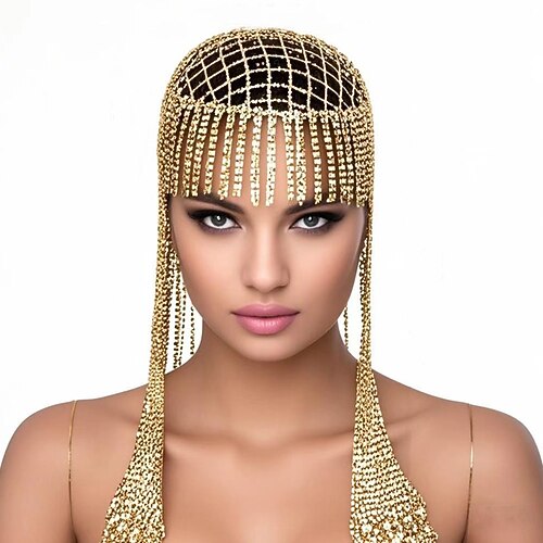 Accessori Samba del Carnevale di Rio Capo decorativo con cristalli scintillanti - Catena di frange di strass gioiello per capelli da festival rave accessorio per il costume del festival in Brasile