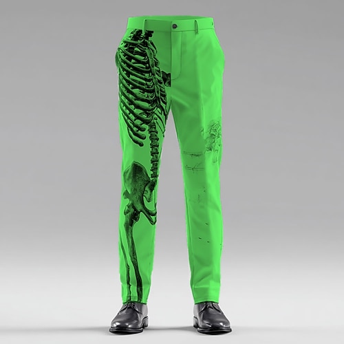 Costumi da Uomini Teschi Scheletro Pantaloni Pantaloni Eleganti Pantaloni da Suit Vita Media Stile Punk Goth Scuro All'aperto Vacanze Pantaloni Slim Fit con Tasche Primavera Autunno Stampa 3D Bianco