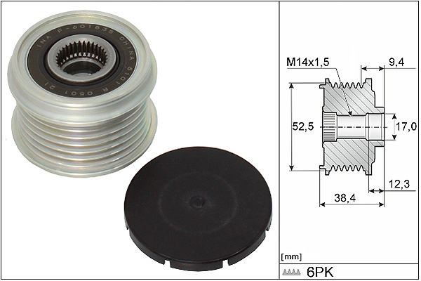 INA Generatorfreilauf 535 0153 10 für RENAULT DACIA GENERAL MOTORS FIAT VAUXHALL MERCEDES-BENZ NISSAN OPEL 1202451 8200654785 0009064022