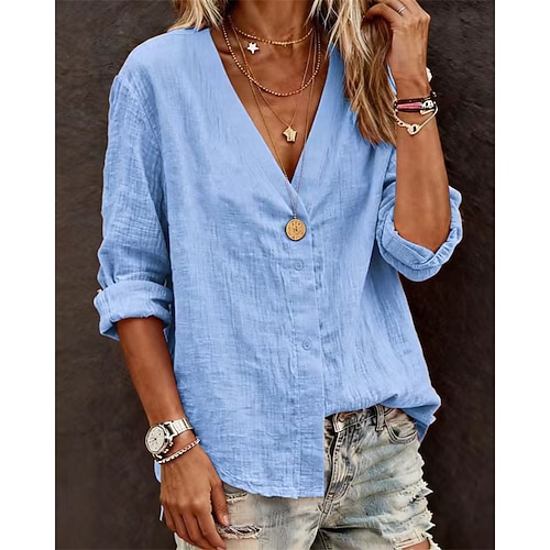 Per donna Blusa Tinta unica Elegante Casual Manica Lunga Girocollo Top Regolari Quotidiano Bottoni Nero Rosa Rosso Blu Primavera Autunno Inverno