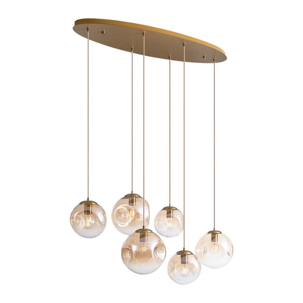 Suspension Art déco laiton verre ambré 6 lampes