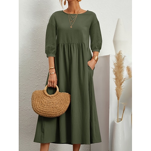 Per donna Vestito maxi Abito casual Abito in cotone e lino Essenziale Informale Da mare Giornaliero Standard Liscio Manica a 3/4 Girocollo Rosa Blu Marrone Verde Estate