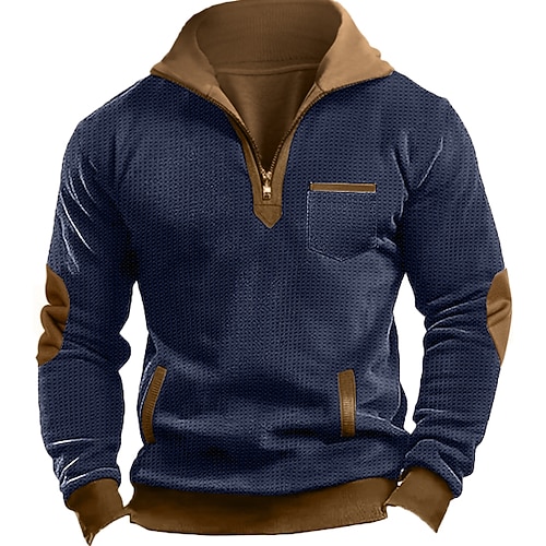 Per uomo Maglia Maglione Blu Rosso bordeaux Giallo Verde militare Blu marino Girocollo Semplice Patchwork Tasca Sport Outdoor Casuale Quotidiano Vintage Streetwear Abbigliamento Sportivo Primavera