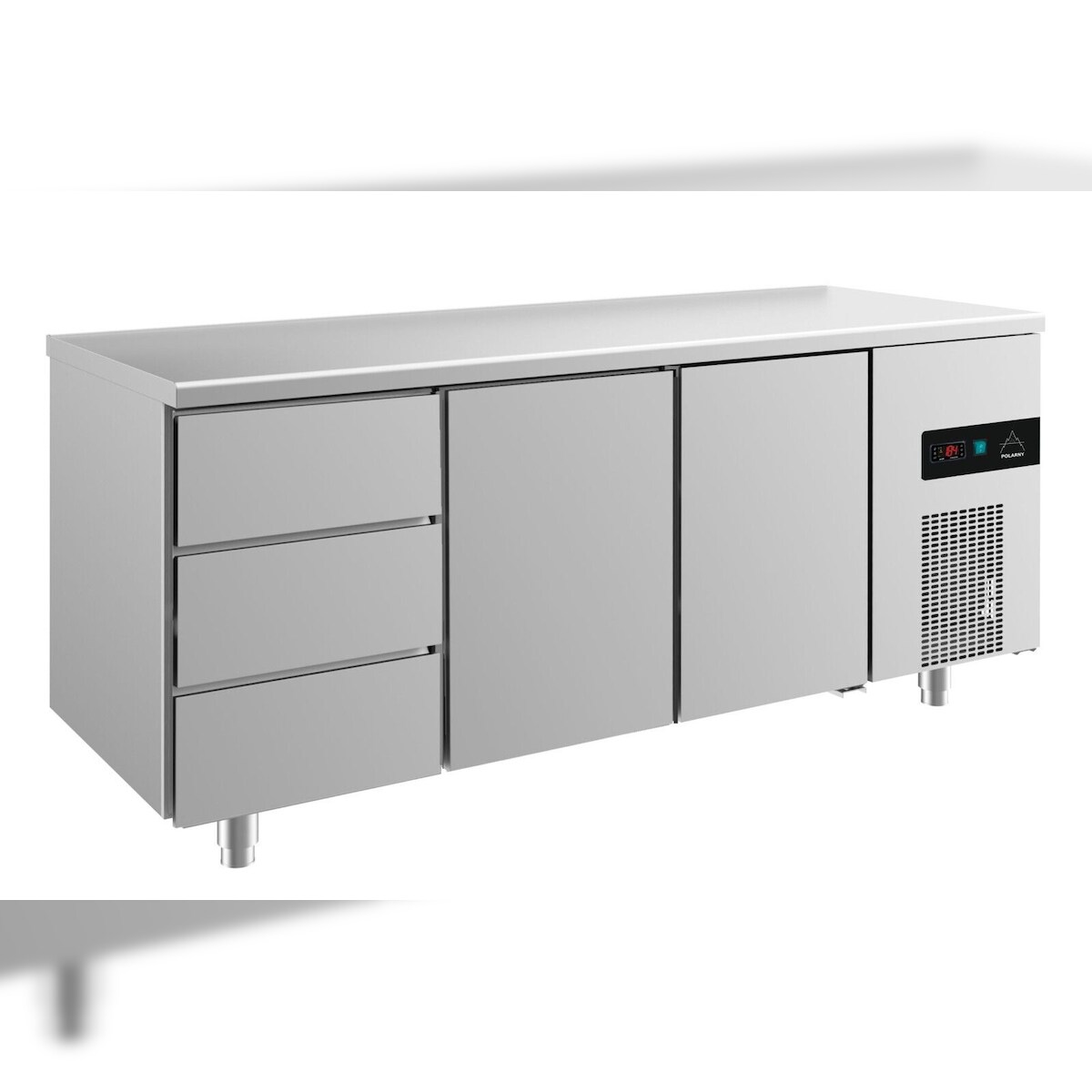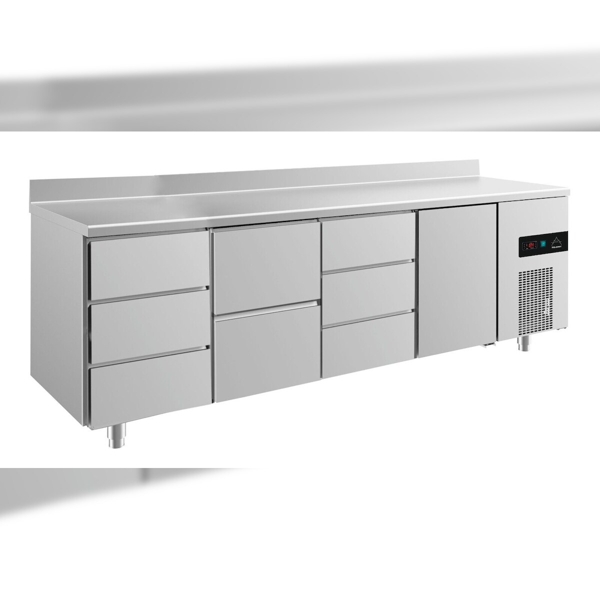A&S polarny Kühltisch 2 Schubladen Mitte je 3 Schubladen links&Mitte 1 Tür rechts, Aufkantung, 2330x700x850mm -2/+8°C 632l