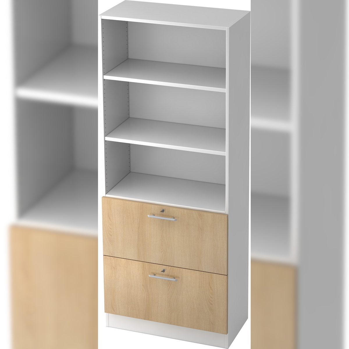 bümö office Aktenschrank mit Hängeregister-Schubladen abschließbar, Büroschrank Holz, 80cm breit in Weiß/Eiche - Hängeregistratur für Hängeordner,