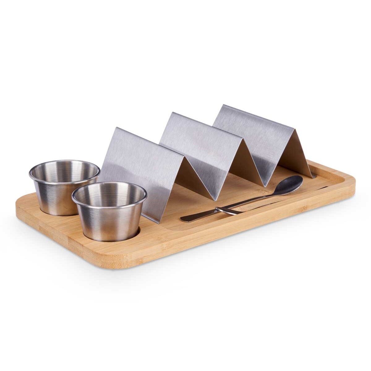 San Ignacio KINVARA - Taco-Halter mit Saucieren aus Bambus und Metall, 16 x 28 cm