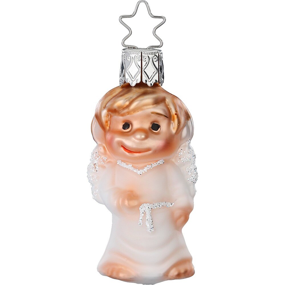 INGE-Glas Manufaktur Christbaumschmuck Engelchen 6,5cm - Glas Figur Mundgeblasen & Handbemalt Weihnachtsbaum Anhänger Weihnachten Christbaumanhänger Engel Weiß