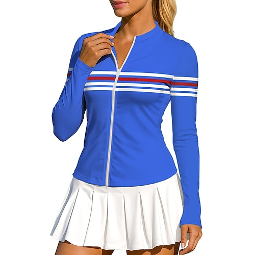 Per donna Geometrico A righe Top Maglietta sportiva Maglia da tennis Maglietta da tennis Manica Lunga Cerniera Floreale UPF50 Resistente ai Raggi UV Alta elasticità Traspirante Pallavolo Tennis Golf