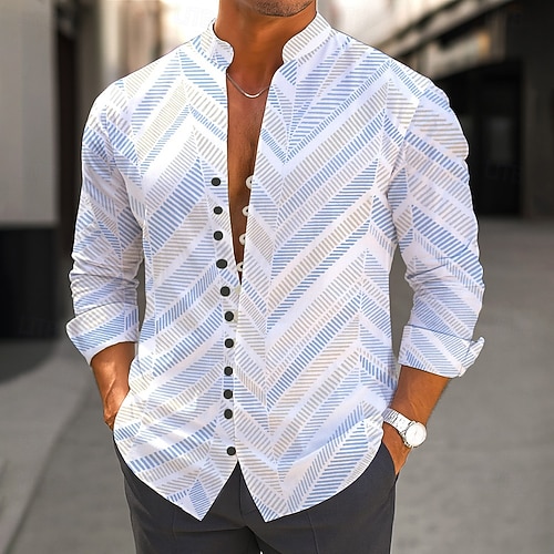 Per uomo Sfumatura Onde Camicia Camicia con colletto alla coreana Manica Lunga Casual Vacanza Abbigliamento quotidiano Uscire Primavera Autunno Collo alla coreana Colletto alla coreana Bottonato