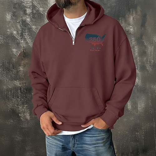 Per uomo Felpa con cappuccio Maglione Felpa con cappuccio e zip corta Vino Blu marino Grigio Azzurro Con Cappuccio Grafico Tasca Casuale Quotidiano Ferie Streetwear Casual Autunno Inverno