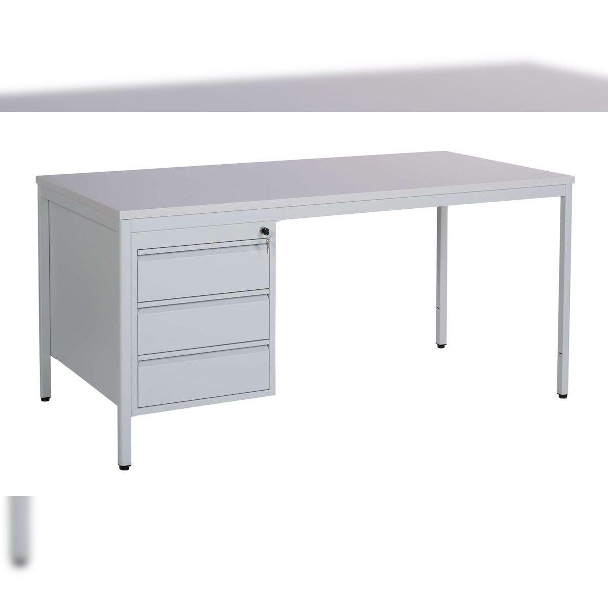 CEHA Büro- und Arbeitsschreibtisch 160 x 80 cm mit Hängecontainer und 3 Schubladen|Gestell lichtgrau, Dekor grau