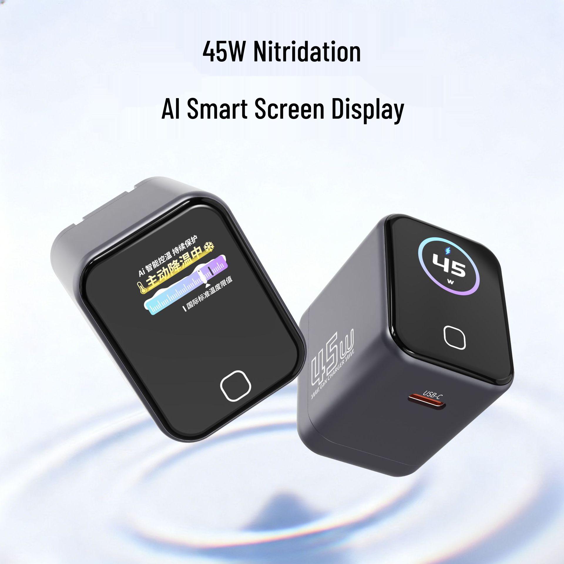 45-W-GaN-Schnellladegerät mit KI-gestütztem Smart-Display für Tablets und Smartphones