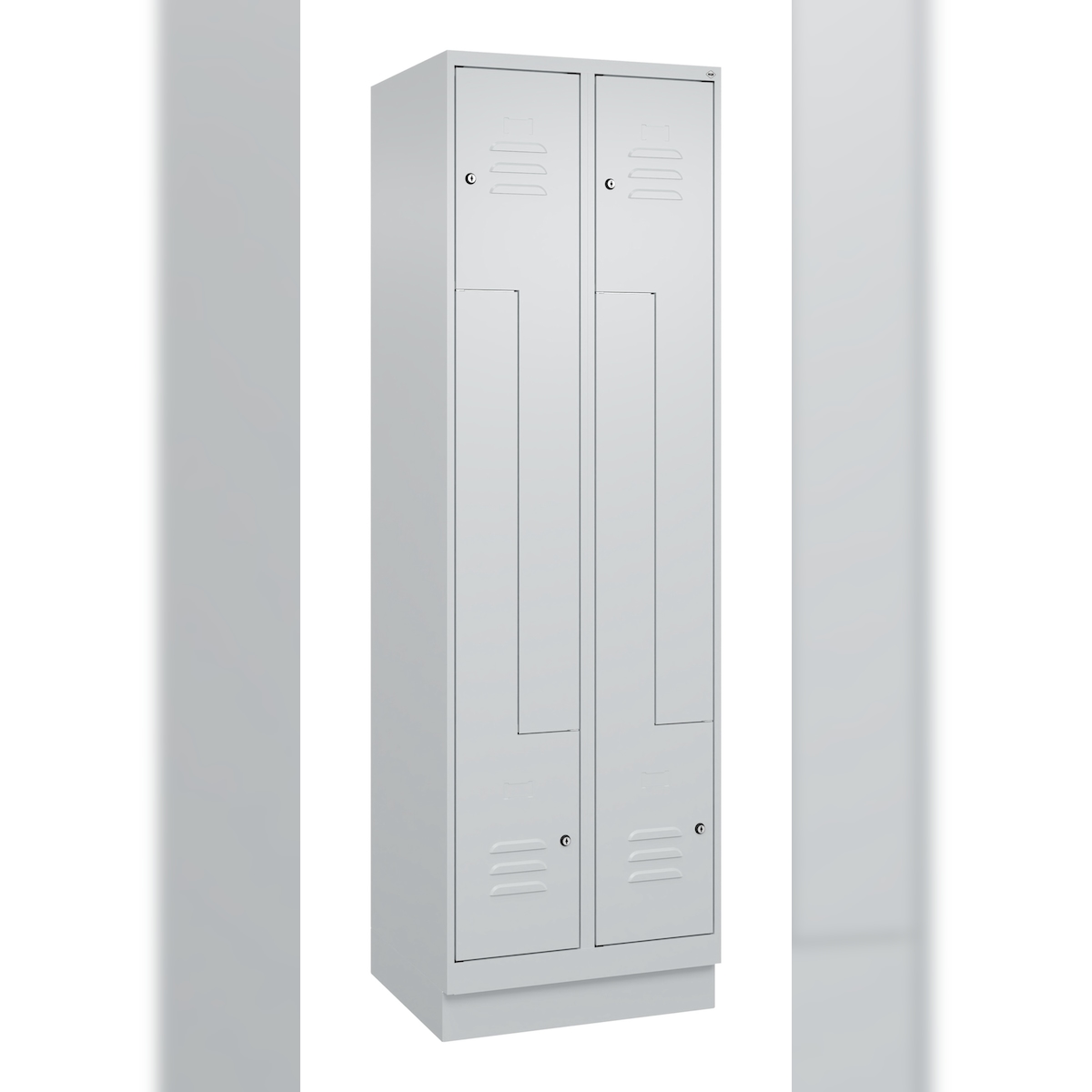 C+P Z-Spind Classic PLUS, Sockel, 4 Abteile, HxBxT 195x60x50cm, Zylinderschloss, Hellgrau/Hellgrau von PROREGAL