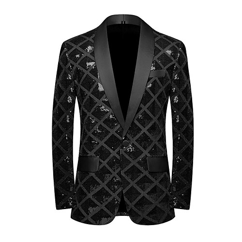 Per uomo Giacca blazer Collo a scialle Festa A quadri Blazer Nero Argento Rosa Vestibilità aderente Monopetto Un Bottone