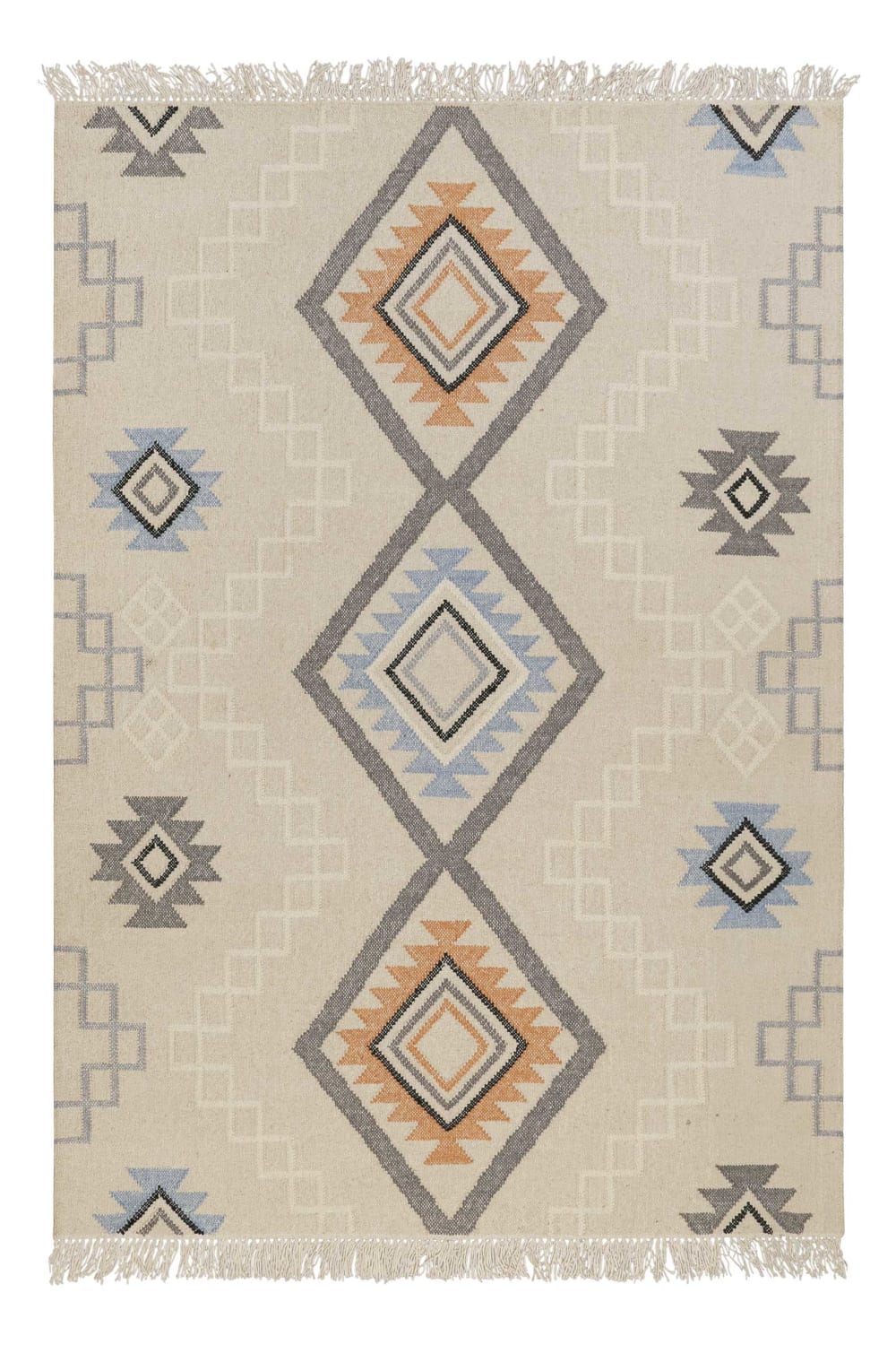 Tapis kilim pure laine tissé main ethnique chic à franges 80x150