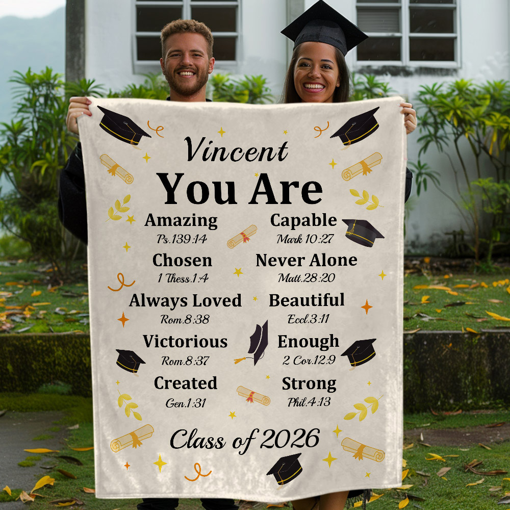 Cappello di laurea personalizzato Capitolo della Bibbia Coperta morbida con nome e anno Home Decor Regalo di laurea ispiratore per laureati cristiani
