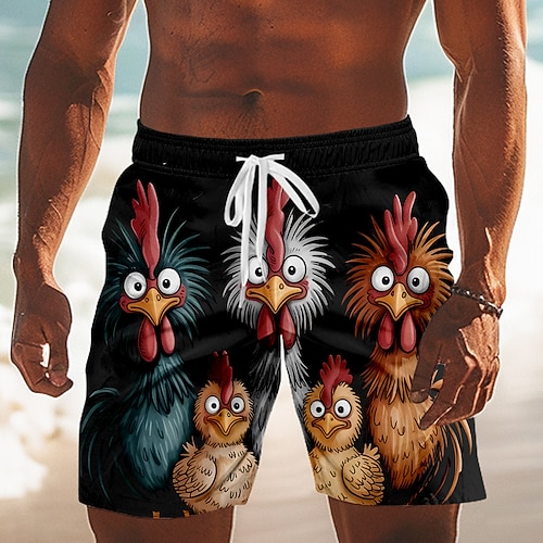 Per uomo Cartoni animati Pulcino Frizzle Chickens Costumi da bagno Pantaloncini da mare Pantaloncini da Surf Misura del girovita medio Hawaiano Divertente Vacanza al Mare Tasche Laterali fodera in