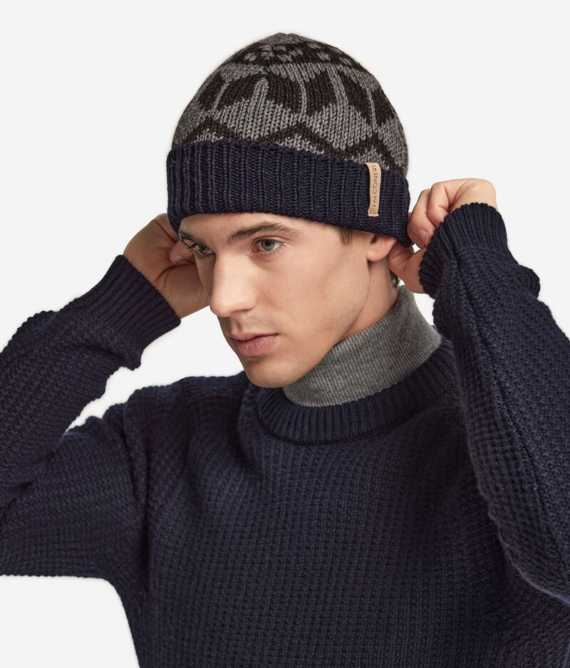 Falconeri Berretto con lavorazione jacquard in cashmere Uomo Blu Taglia TU