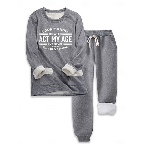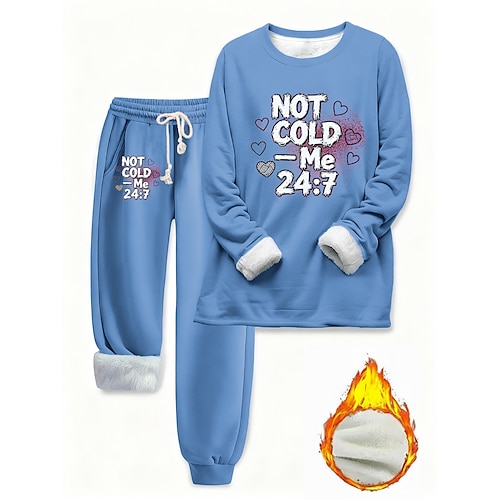 Completo da donna in 2 pezzi caldo comfort felpa maniche lunghe pantaloni lunghi collo giro lettera vita elastica casa quotidiano letto rosa rosa scuro blu autunno