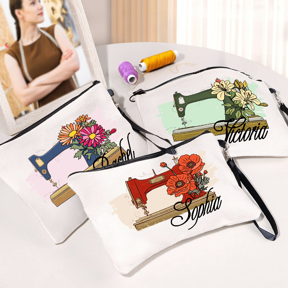 Personalizzato Vintage nascita fiore macchina da cucire portatile borsa per il trucco con il nome e cinturino da polso regalo di compleanno per le donne amanti del cucito Craft