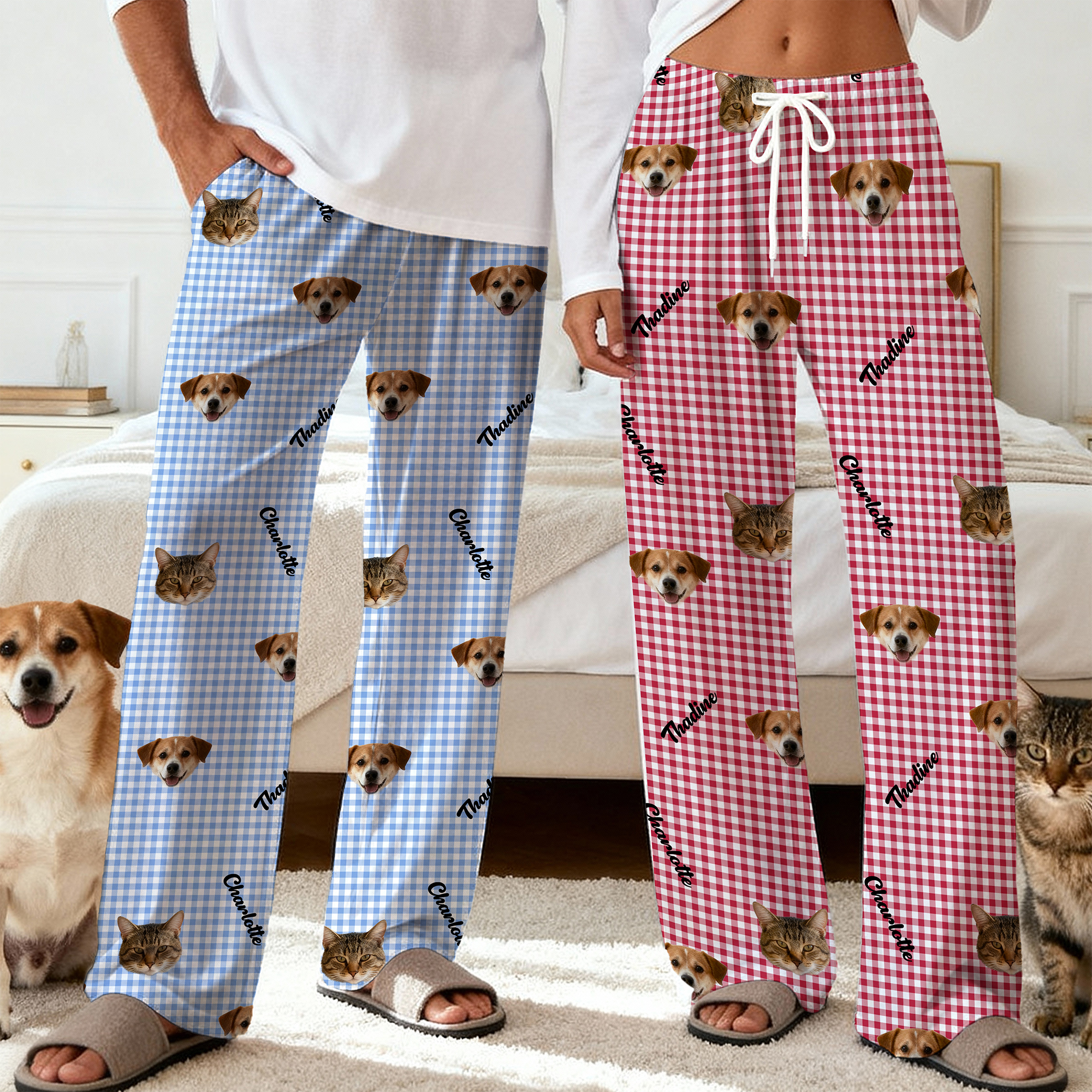 Personalizzato con foto del volto e pantaloni del pigiama a righe con nome e tasca Regalo di compleanno per la festa di uso quotidiano per i proprietari di animali familiari