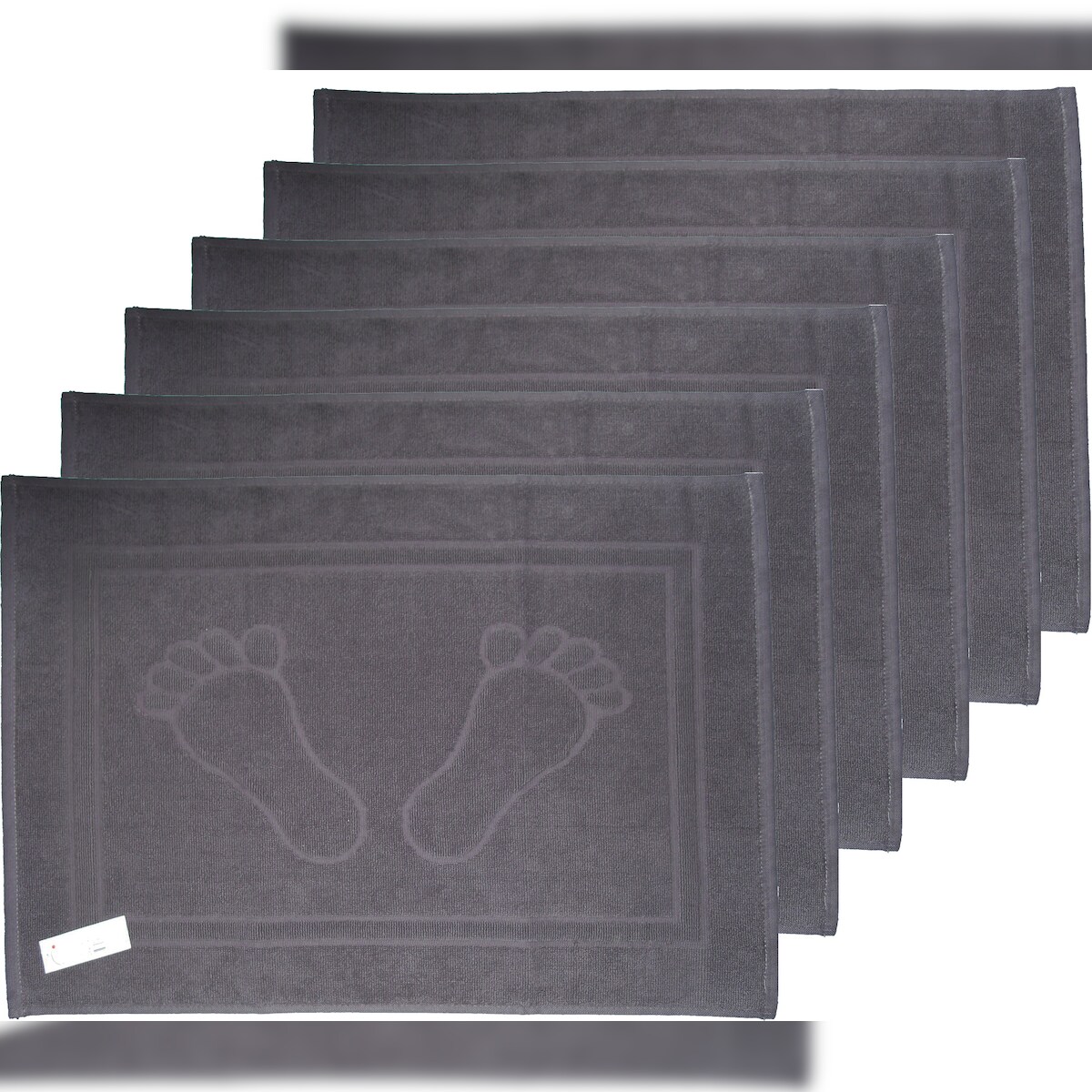 6er Pg. Frottier Duschvorleger, Badematte, Frottee, 50 x 70 cm, grau, Füße, uni einfarbig, Badvorleger, 100% Baumwolle