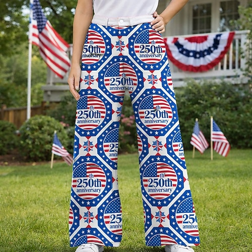 Americano 250 Retrò Vintage Anni '70 Pantaloni Pantaloni a gamba larga Hippie Disco Vita alta Costume Per donna Mascherata 4 Luglio Giorno dell'Indipendenza Semiquincentenario Adulti Pantaloni