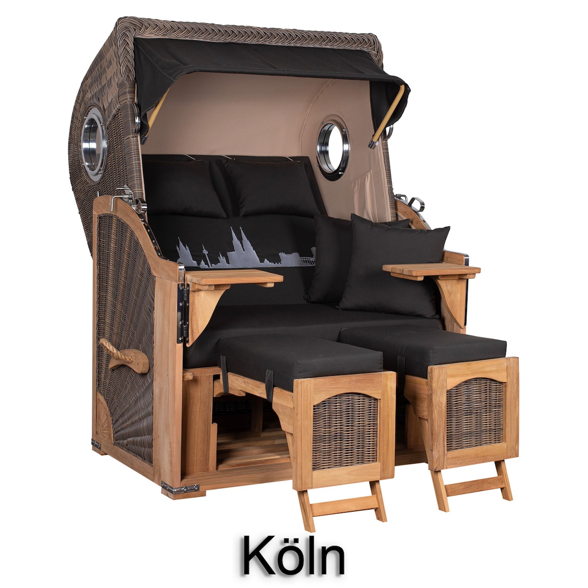 Mr. Deko Strandkorb - bene living - Ammersee Teak Bullauge - PE grau - Skyline Köln - Liftersystem