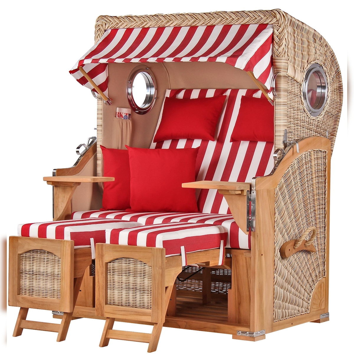 Mr. Deko Strandkorb - bene living - Borkum XL Teak Bullauge - PE grau - Modell 534 - 2,5-Sitzer inkl. Liftersystem