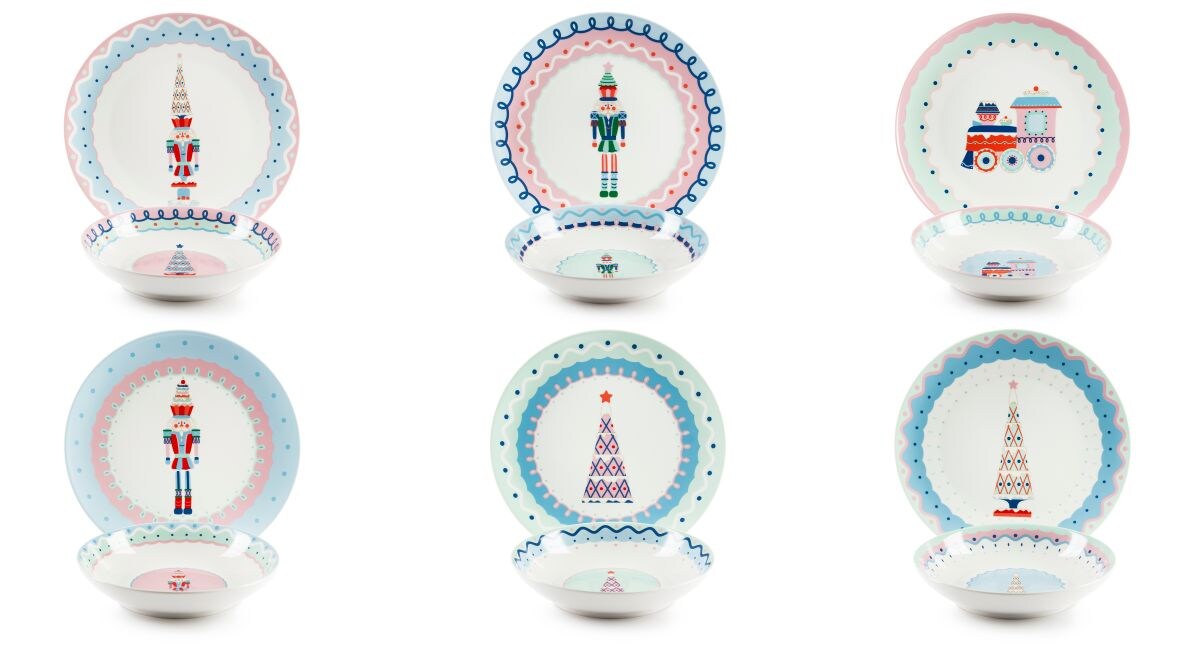 Excelsa Geschirrset 12-teiliges Xmas Sweet Pastels Porzellan Bunt
