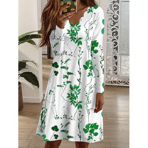 Per donna Mini Abito Abito a Tubino Abito a trapezio Casual Quotidiano Vestibilità regolare Floreale Grafico Manica Lunga Scollo a V Giallo Rosso Blu Viola Primavera Autunno Inverno