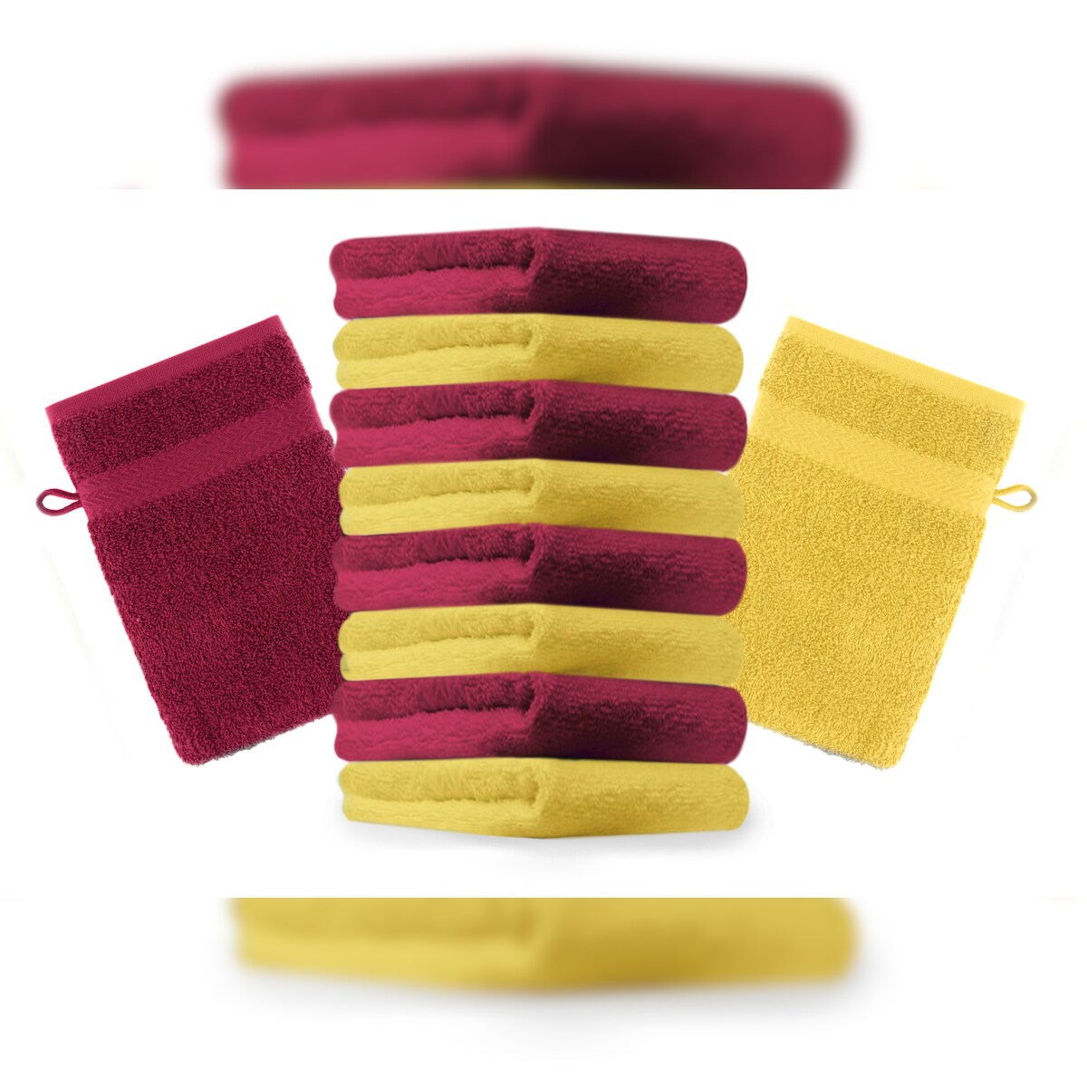 Betz 10 Stück Waschhandschuhe PREMIUM 100% Baumwolle Waschlappen Set 16x21 cm Farbe gelb und dunkelrot