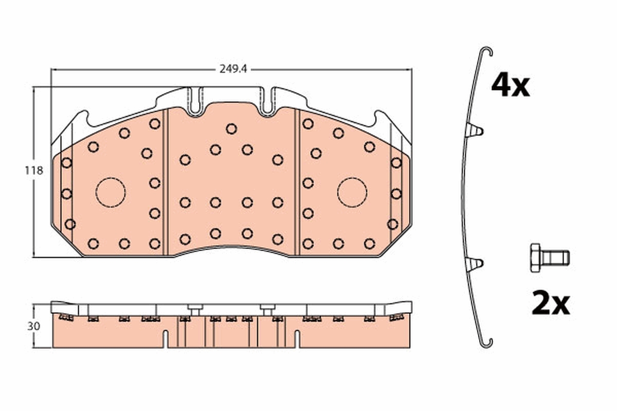 TRW Bremsbelagsatz, Scheibenbremse GDB2362 vorne rechts links mit Zubehör für VW MAN 2N0698151 65.50820-6000