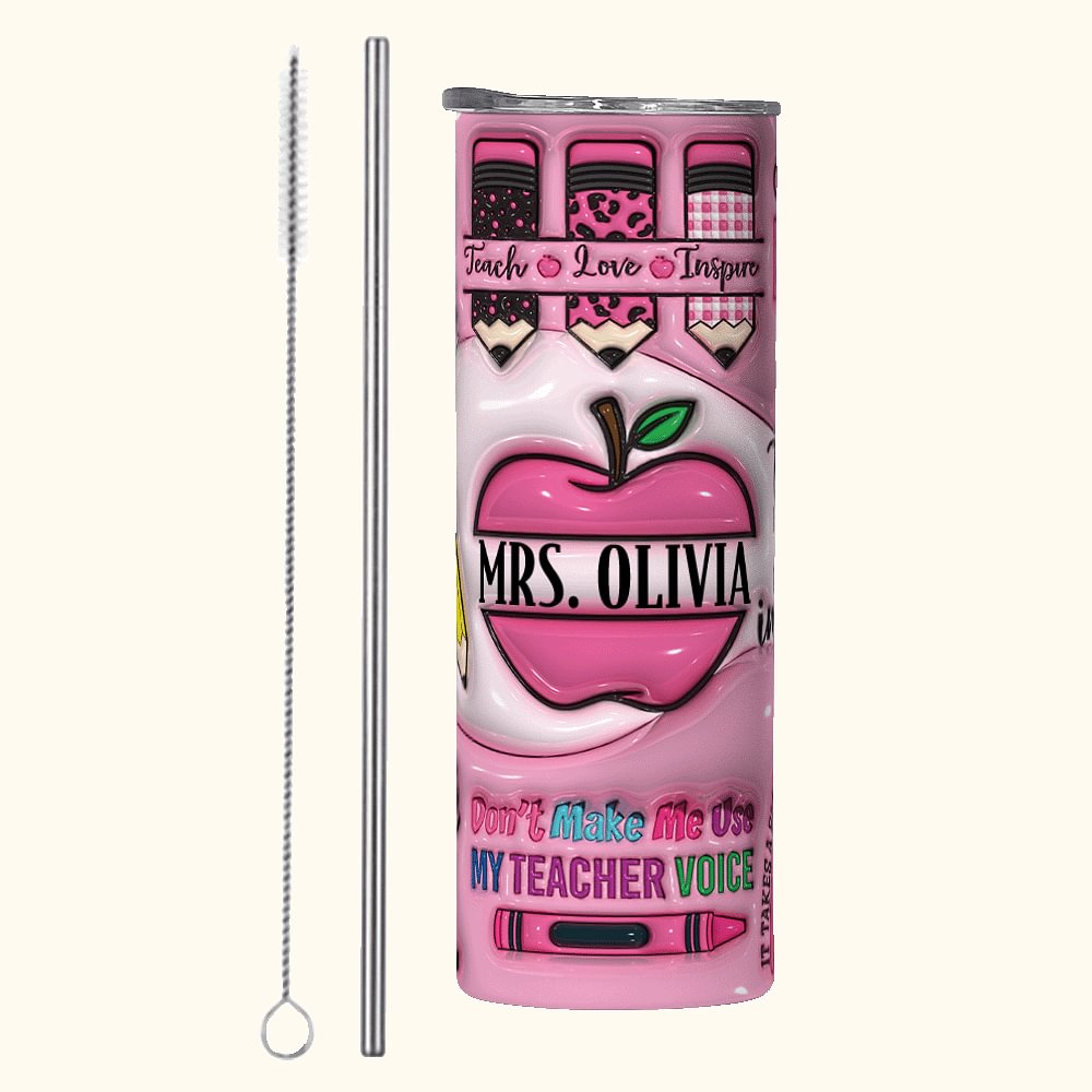 Henkilökohtainen 3D Pink Apple Pencil Teach Love Inspire Food-Grade 20oz Skinny Tumbler nimi Opettaja arvostus takaisin kouluun lahja opettajalle