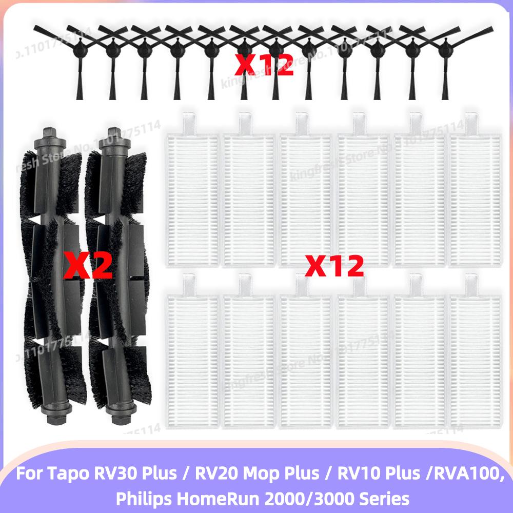 Passar för (TP-Link Tapo RV30 Plus /RV20 Mop Plus/RV10 Plus/ RVA100, Philips HomeRun 2000/3000-serien) Delar Huvudsida Borste Filter