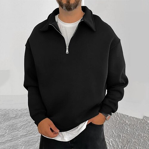 Per uomo Felpa con zip Felpa a nido d'ape Maglione Nero Bianco Blu marino Cachi Grigio scuro Mezza zip Semplice Cerniera Tasca Lavoro Sport Outdoor Casuale senza stampa Attivo Vintage Cool