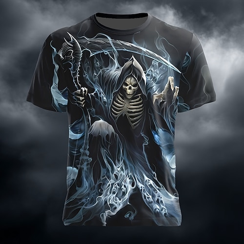 Per uomo La Morte 3D Mietitrice Maglietta Manica Corta maglietta Stampa 3D Girocollo Camicia Esagerato Designer Orrore Feste Streetwear Ferie Blu Verde Estate Primavera Tutte le stagioni Abbigliamento
